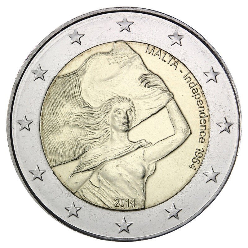 Žyma: 2 eurai, 2 euro, 2014, malta, moneta, nepriklausomybe, proginė, unc