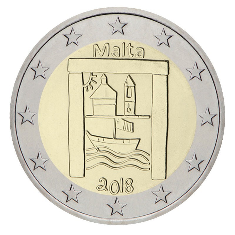 Žyma: 2 eurai, 2 euro, 2018, BU, kortelė, Kultūros paveldas, malta, moneta, moneta kortelėje, Moneta su kalyklos ženklais., paveldas, proginė