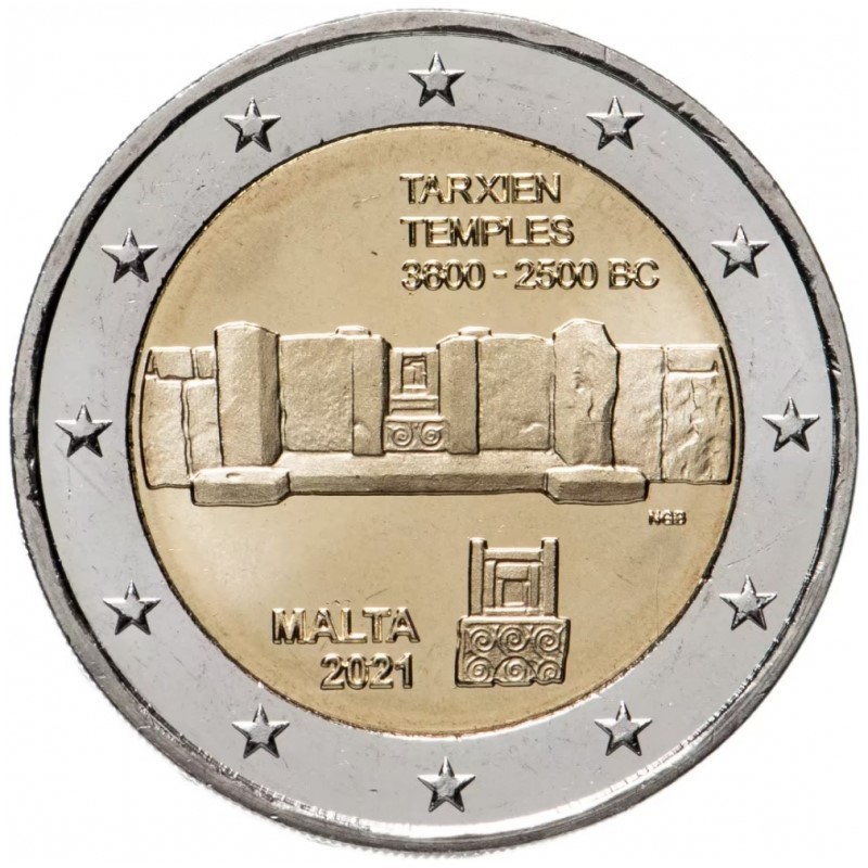 Malta 2021 2 euro proginė moneta – Tarxien šventyklos