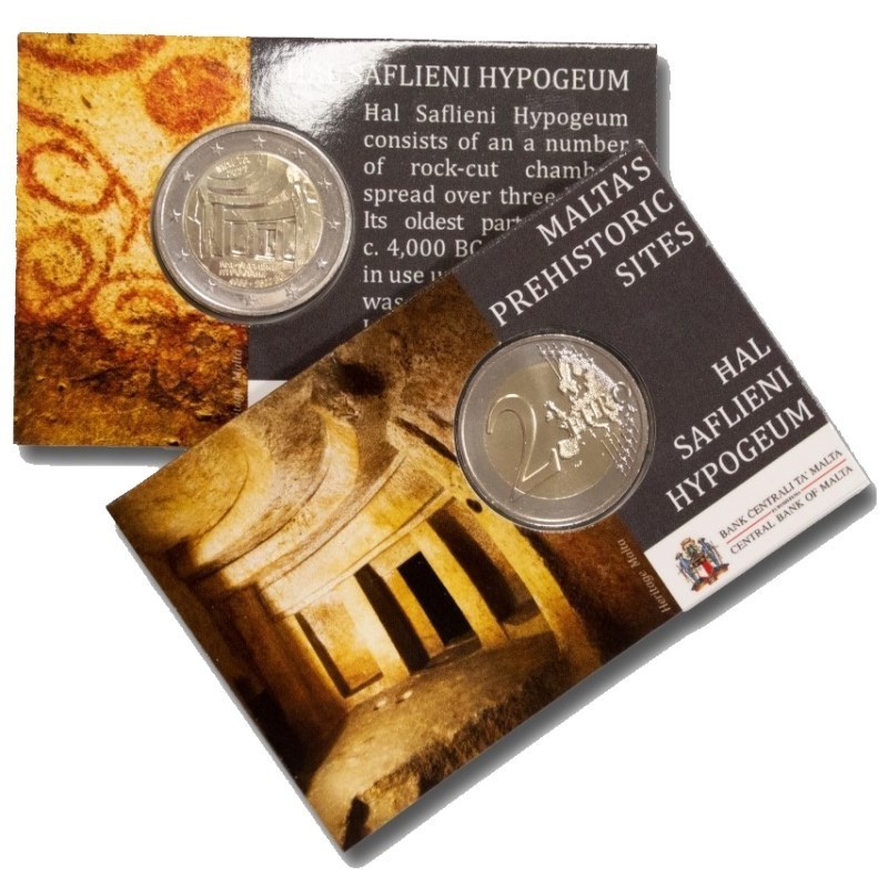 Žyma: 2 eurai, 2022, BU, Ħal-Saflieni, Ħal-Saflieni Hypogeum požemis, kortelė, malta, moneta, moneta kortelėje, Priešistorinės vietos, proginė