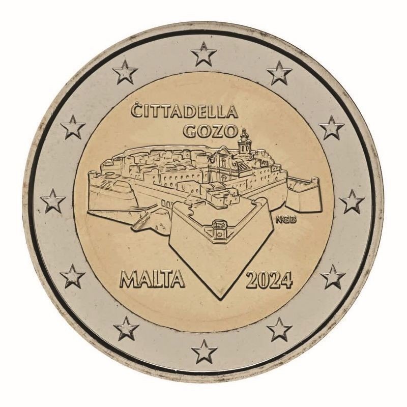 Žyma: 2 eurai, 2 euro, 2024, BU, Citadelė, Gozo, malta, moneta, proginė