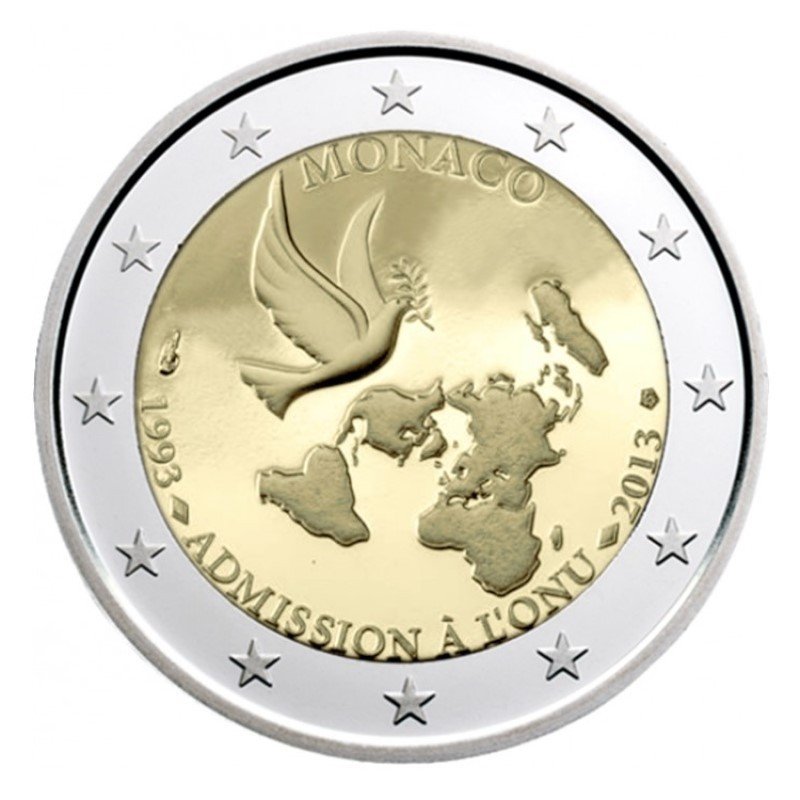 Monakas 2013 2 euro proginė moneta – Įstojimo į JTO 20-osios metinės
