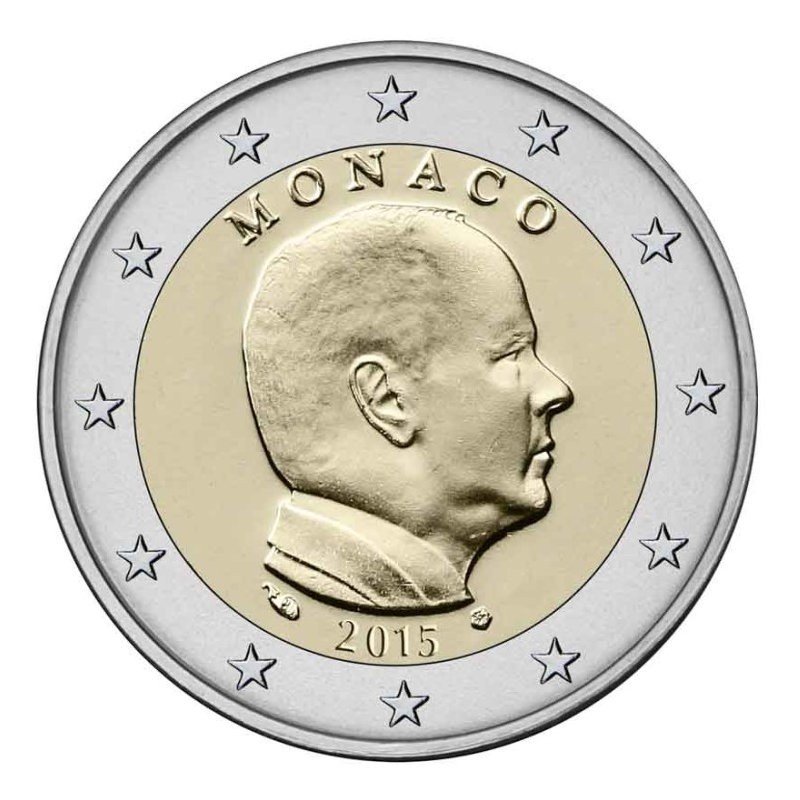 Žyma: 2 eurai, 2 euro, 2 eurų, 2015, Monakas, moneta, nacionalinė, unc