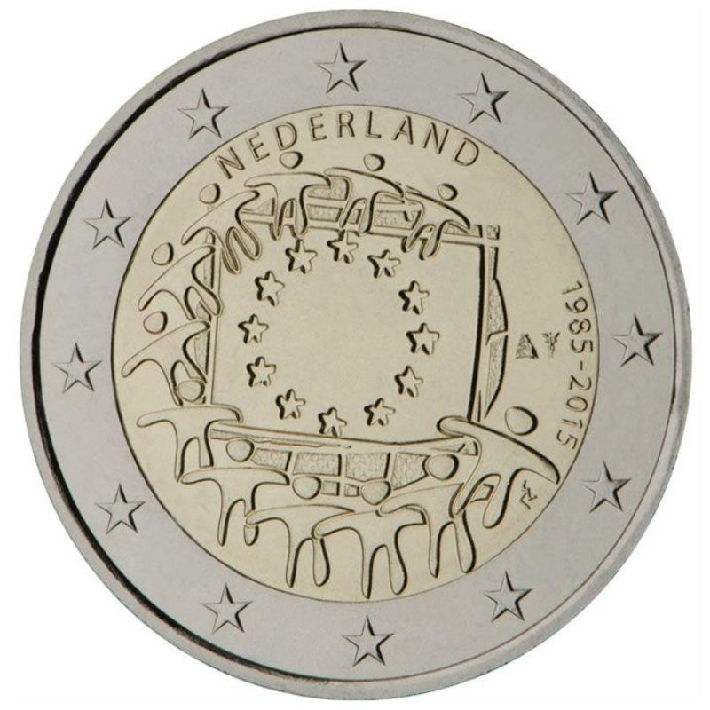Žyma: 2 eurai, 2 euro, 2015, moneta, nyderlandai, olandija, proginė, unc, vėliava