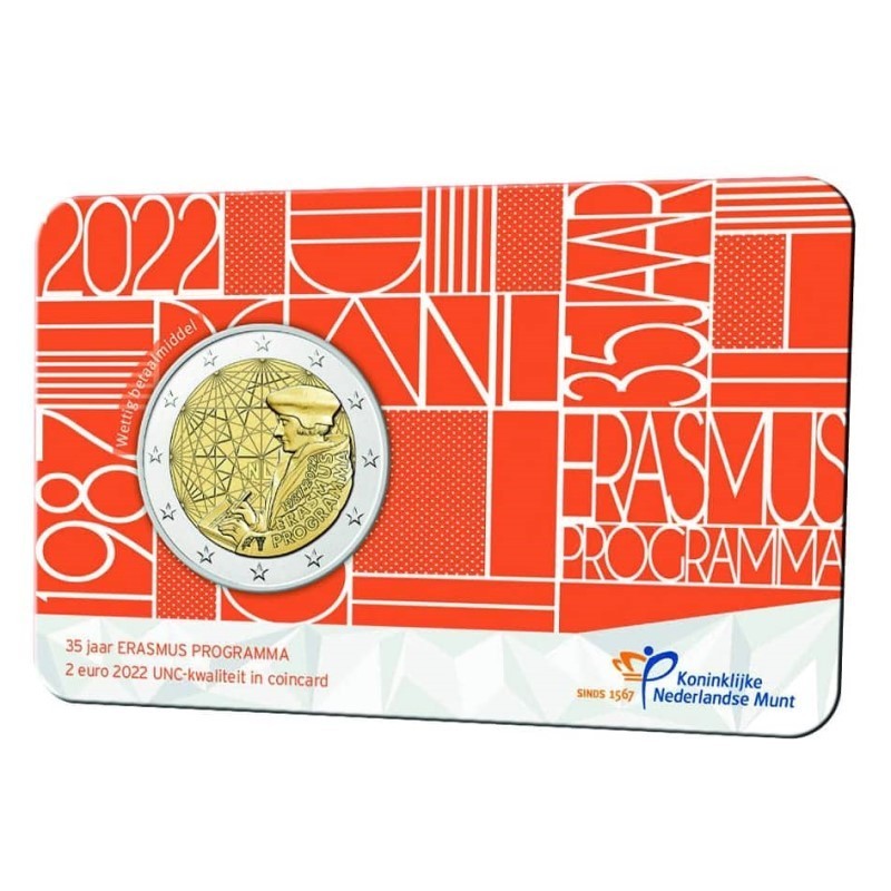 Nyderlandai 2022 2 euro proginė moneta bankinėje kortelėje – 35 metai Erasmus programai (BU kokybė)