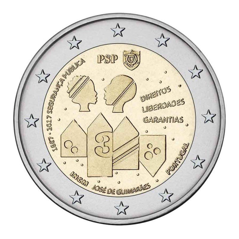 Žyma: 2 eurai, 2 euro, 2017, moneta, pajėgos, portugalija, proginė, saugumas, unc, viešasis