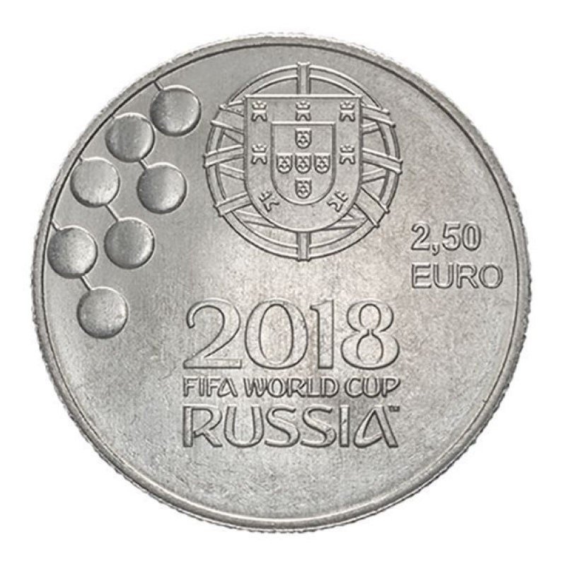 Žyma: 2.5 euro, 2018, FIFA, moneta, Pasaulio futbolo čempionatas, portugalija, proginė, unc