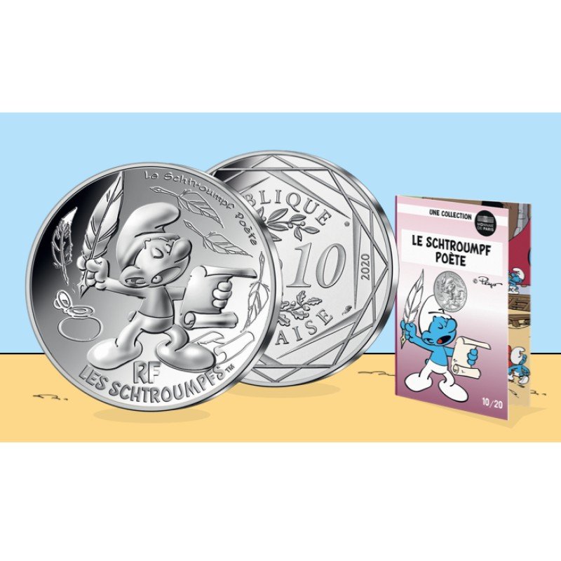Prancūzija 2020 10 euro sidabrinė kolekcinė moneta kortelėje – Smurfas poetas (BU kokybė)
