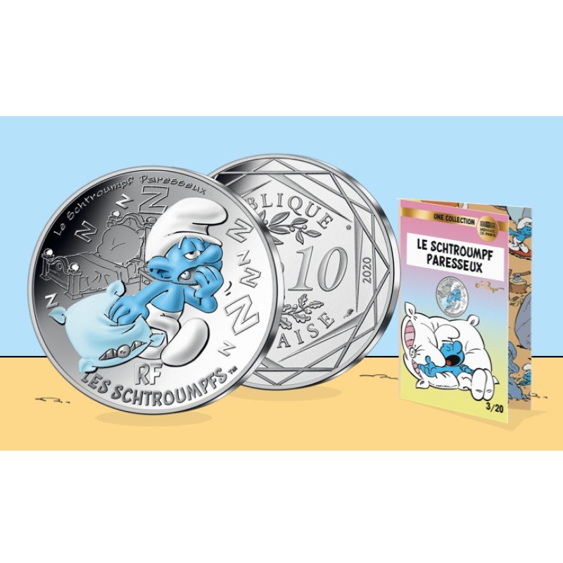 Prancūzija 2020 10 euro sidabrinė spalvota kolekcinė moneta kortelėje – Smurfas tinginys