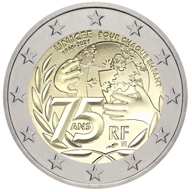 Prancūzija 2021 2 euro proginė moneta – UNICEF (PROOF)