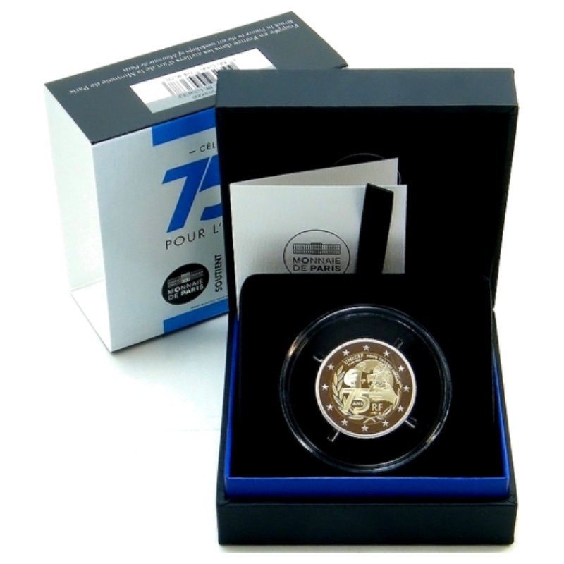 Žyma: 2 eurai, 2 euro, 2021, bankinėje dėžutėje, dėžutėje, moneta, prancūzija, proginė, proof, unicef
