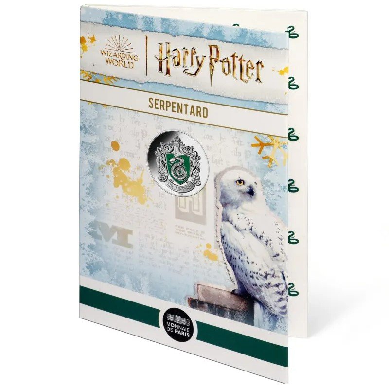 Prancūzija 2022 10 euro sidabrinė spalvota kolekcinė moneta kortelėje – Haris Poteris*Slytherin (BU kokybė)