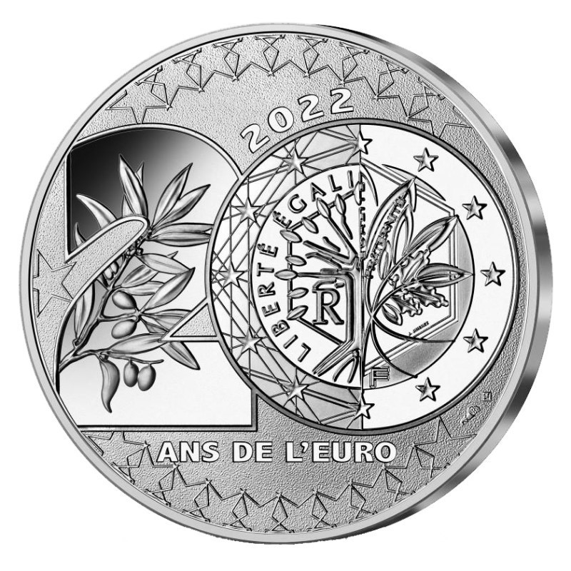Prancūzija 2022 20 euro sidabrinė moneta – 20 metų eurui
