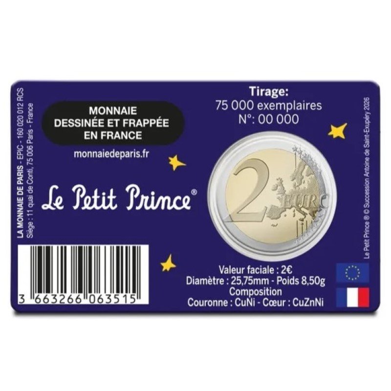 Prancūzija 2026 2 euro proginė moneta kortelėje – Mažasis princas (BU)