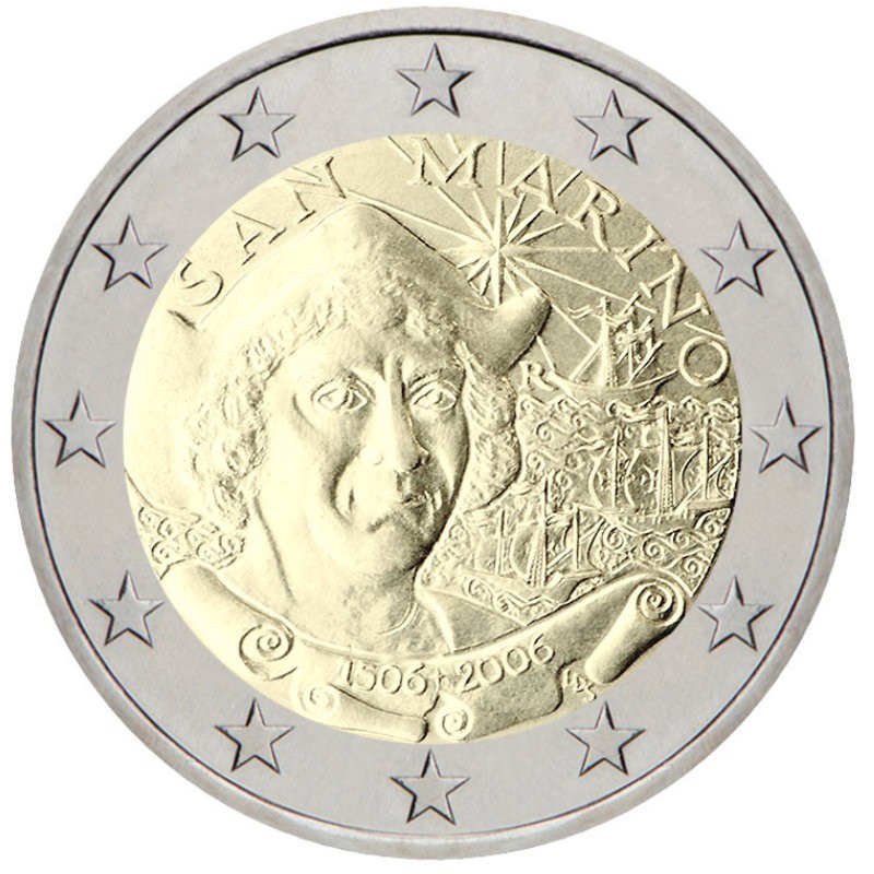 San Marinas 2006 2 euro proginė moneta – Kristupas Kolumbas (BU)