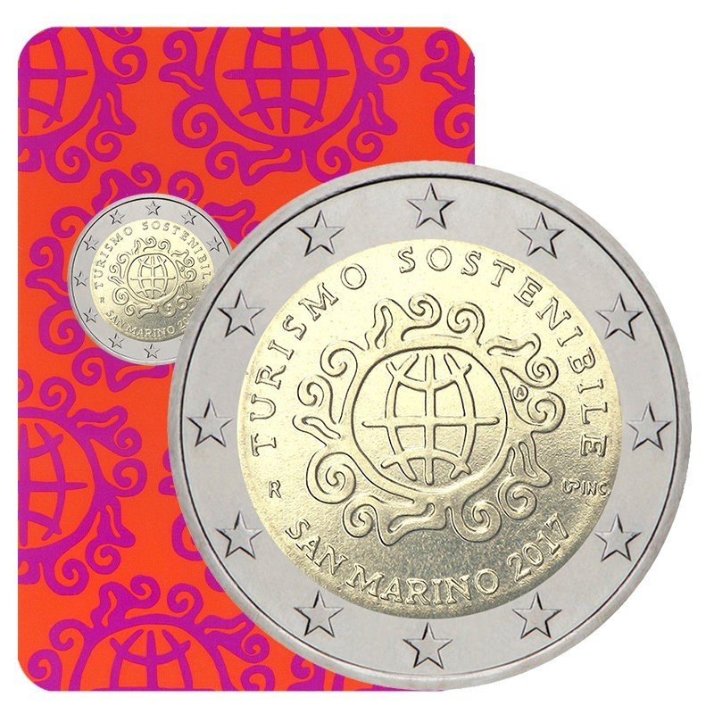 Žyma: 2 eurai, 2 euro, 2017, BU, kortelė, metai, proginė moneta, San Marinas, Turizmas
