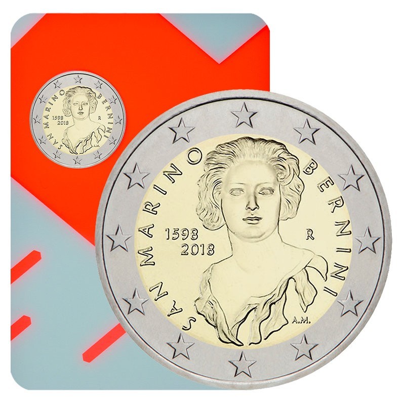 Žyma: 2 eurai, 2 euro, 2018, 420-osios gimimo metinės, Bernini, BU, Gian Lorenzo Bernini, kortelė, proginė moneta, San Marinas