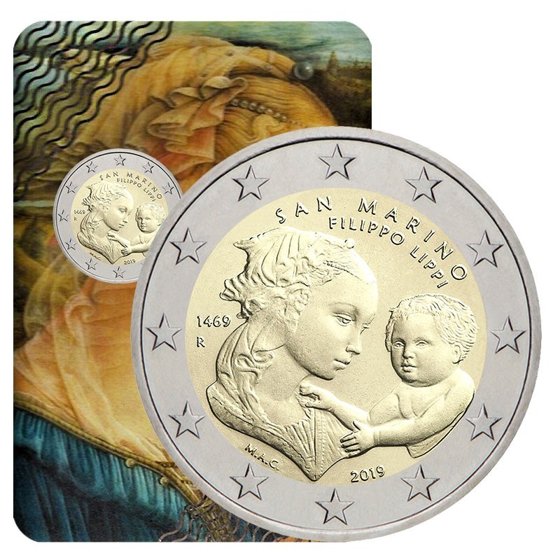 San Marinas 2019 2 euro proginė moneta kortelėje – Filippo Lippi 550-osios mirties metinės (BU kokybė)