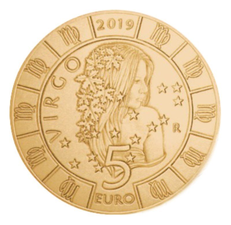 Žyma: 5 eurai, 5 euro, kapsulėje, kolekcinė, Mergelė, moneta, San Marinas, unc, zodiakas, zodiako ženklai
