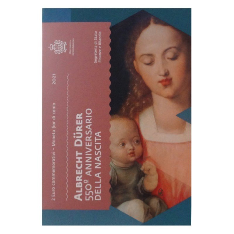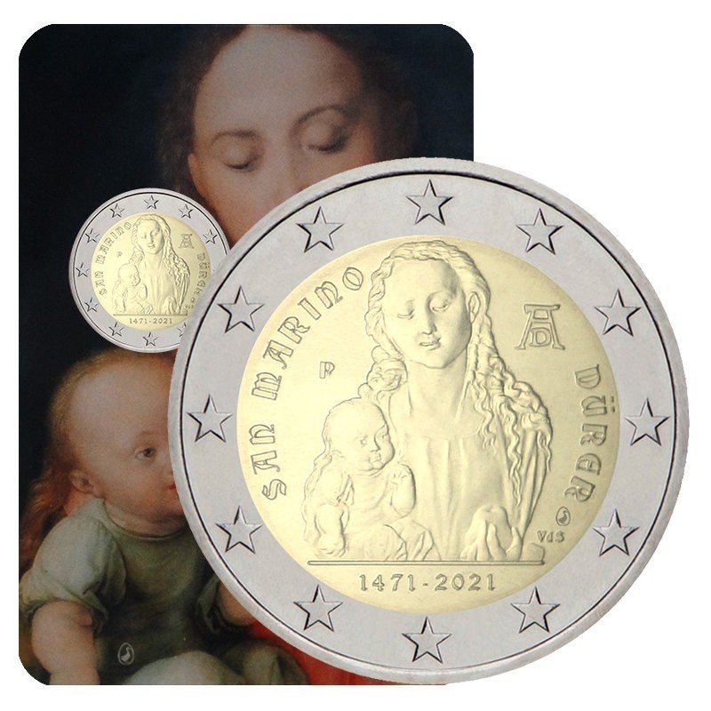 San Marinas 2021 2 euro proginė moneta kortelėje – Albrecht Dürer 530-osios gimimo metinės (BU kokybė)