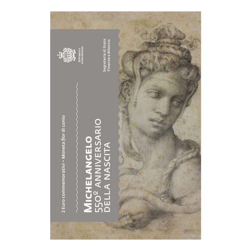 San Marinas 2025 2 euro proginė moneta kortelėje – Mikelandželo 550-osios gimimo metinės (BU)