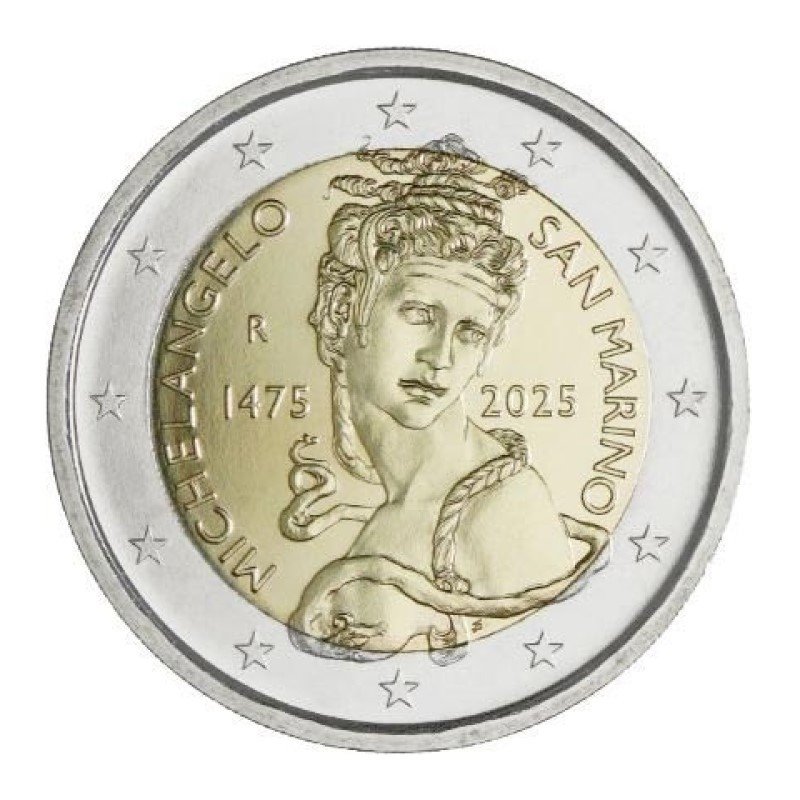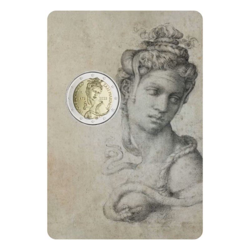 San Marinas 2025 2 euro proginė moneta bankinėje kortelėje – Mikelandželo 550-osios gimimo metinės (BU kokybė)