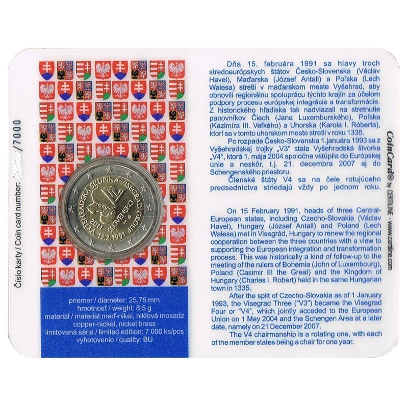 Slovakija 2011 2 euro proginė moneta bankinėje kortelėje – Vyšegrado grupės 20-metis (BU kokybė)