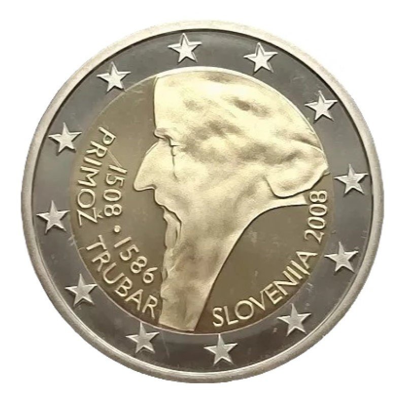 Žyma: 2 eurai, 2 euro, 2008, gimimas, moneta, moneta kapsulėje, primož, proginė, proof, slovėnija, trubar