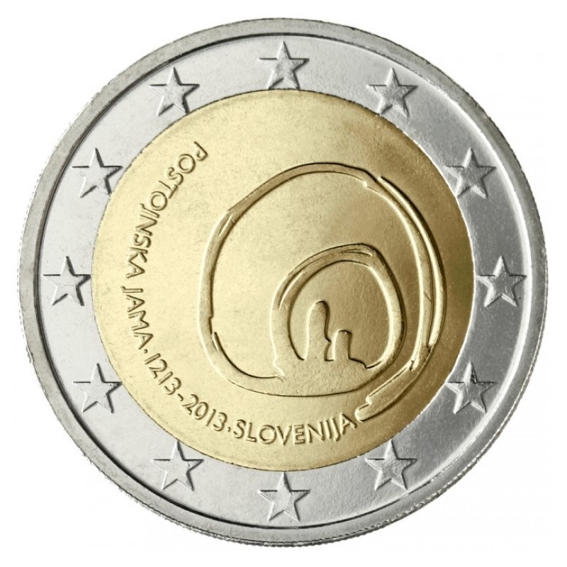 Slovėnija 2013 2 euro proginė moneta – Apsilankymų Postoinos urvuose 800-metis