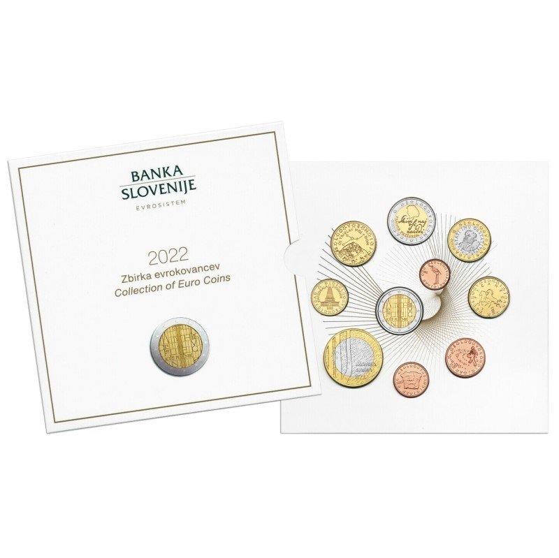 Slovėnija 2022 euro monetų rinkinys su proginėmis 2 euro ir 3 euro monetomis bankinėje pakuotėje (BU)