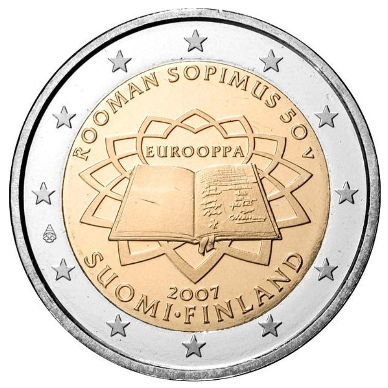 Žyma: 2 eurai, 2 euro, 2007, moneta, proginė, romos, suomija, sutartis, taikos, tor, unc