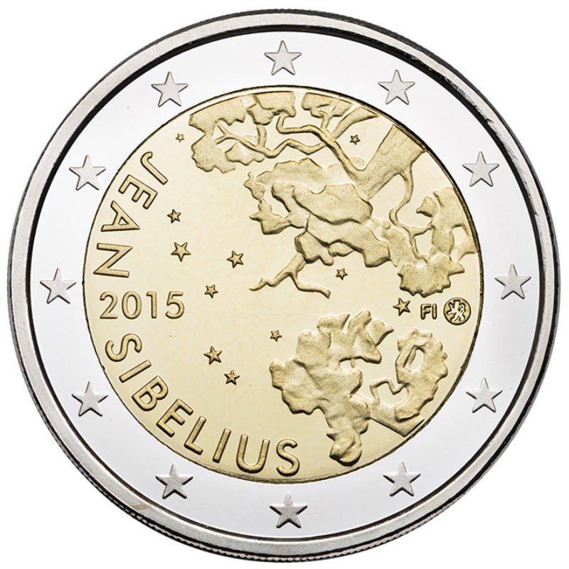 Suomija 2015 2 euro proginė moneta – Jean Sibelius gimimo 150-metis