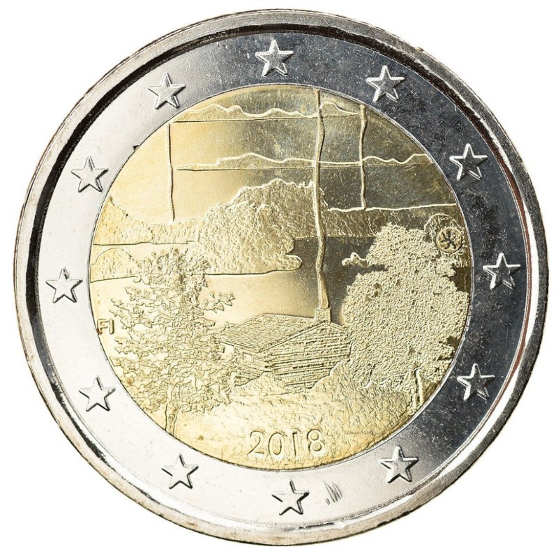 Žyma: 2 eurai, 2 euro, 2018, moneta, proginė, sauna, suomija, unc