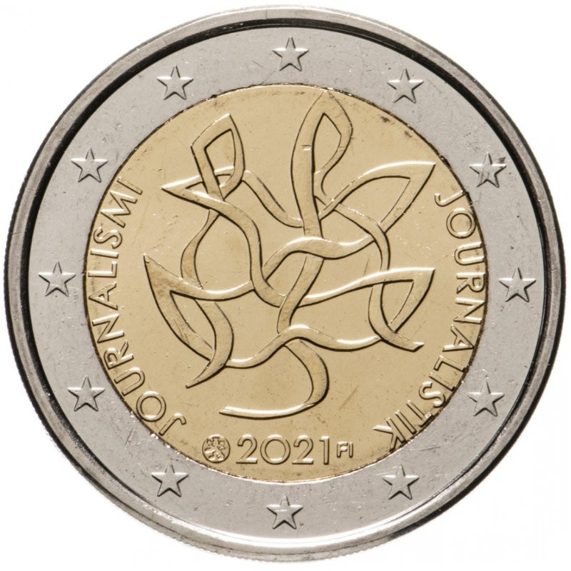 Žyma: 2 eurai, 2 euro, 2021, moneta, moneta dėžutėje, proginė, proof, suomija, žurnalistika
