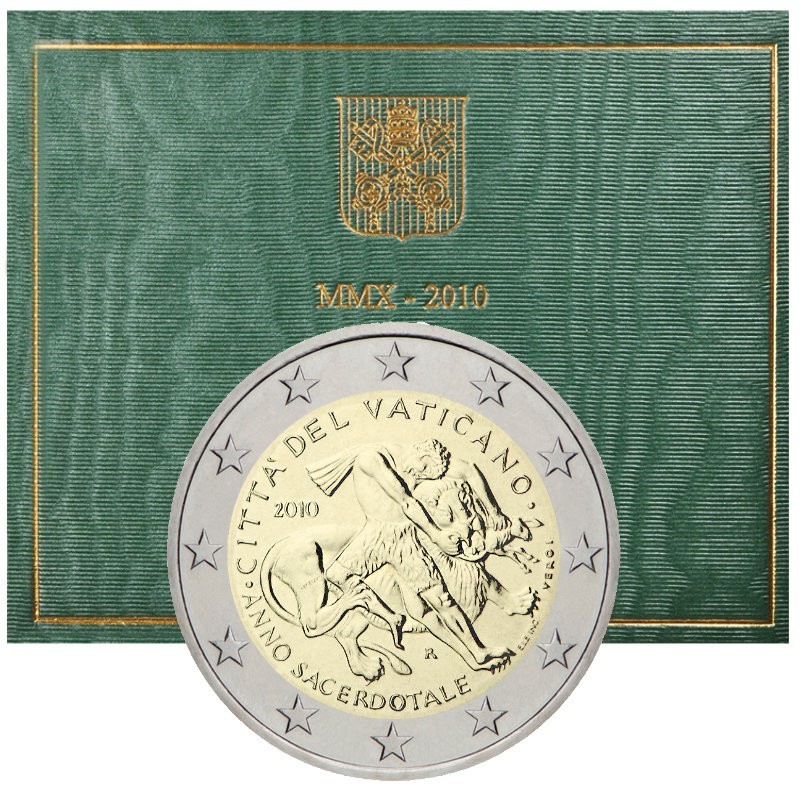 Žyma: 2 eurai, 2 euro, 2010, BU, kortelė, Kunigų, metai, proginė moneta, Vatikanas
