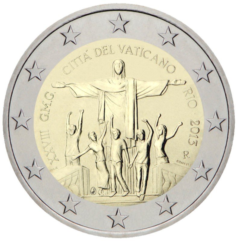 Vatikanas 2013 2 euro proginė moneta bankinėje kortelėje – Jaunimo dienos Rio de Žaneire (BU kokybė)