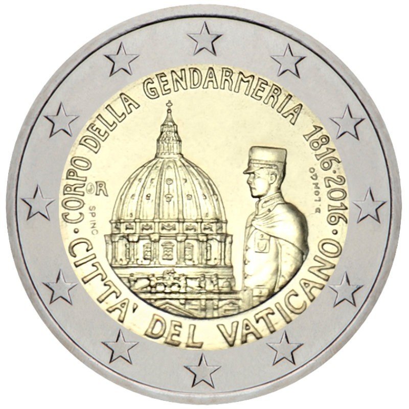 Žyma: 2 eurai, 2 euro, 2016, apsauga, BU, kortelė, metai, proginė moneta, Vatikanas, Žandarmerija