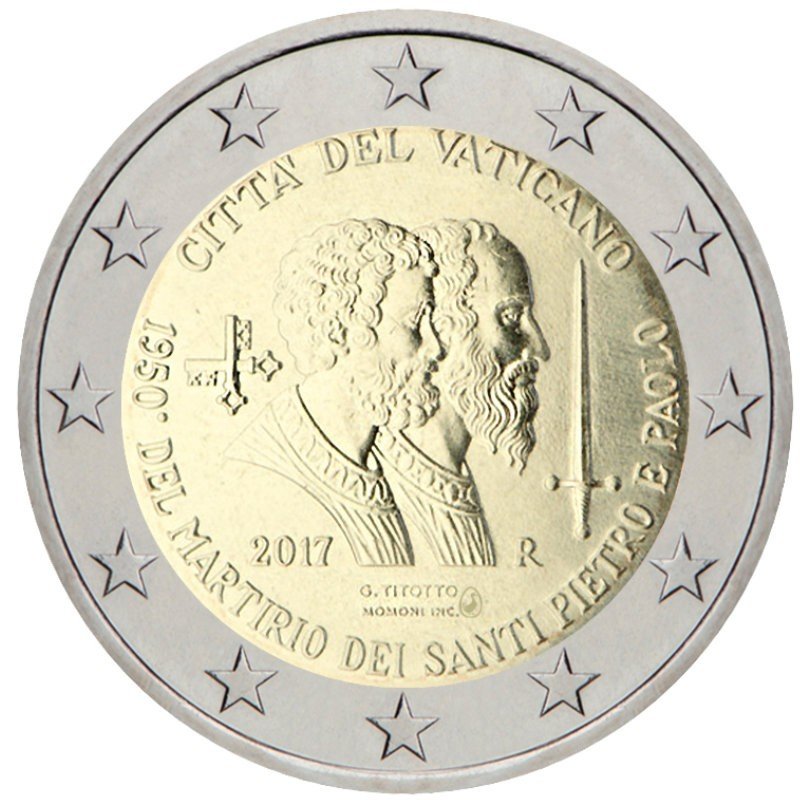 Vatikanas 2017 2 euro proginė moneta bankinėje kortelėje – Šv. Petras ir Šv. Paulius (BU kokybė)