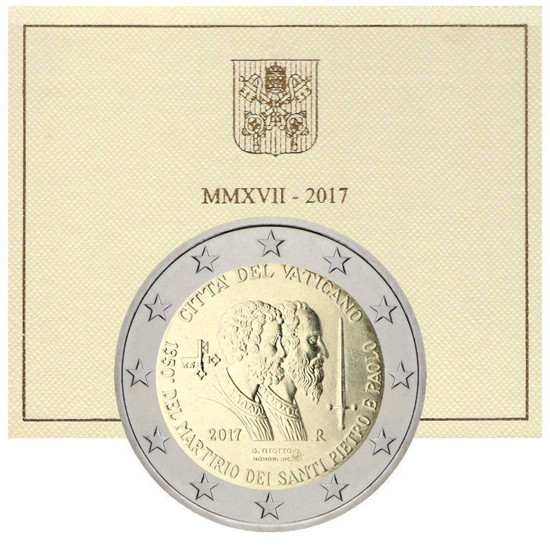 Žyma: 2 eurai, 2 euro, 2017, BU, kortelė, metai, proginė moneta, Šv. Paulius, Šv. Petras, Vatikanas