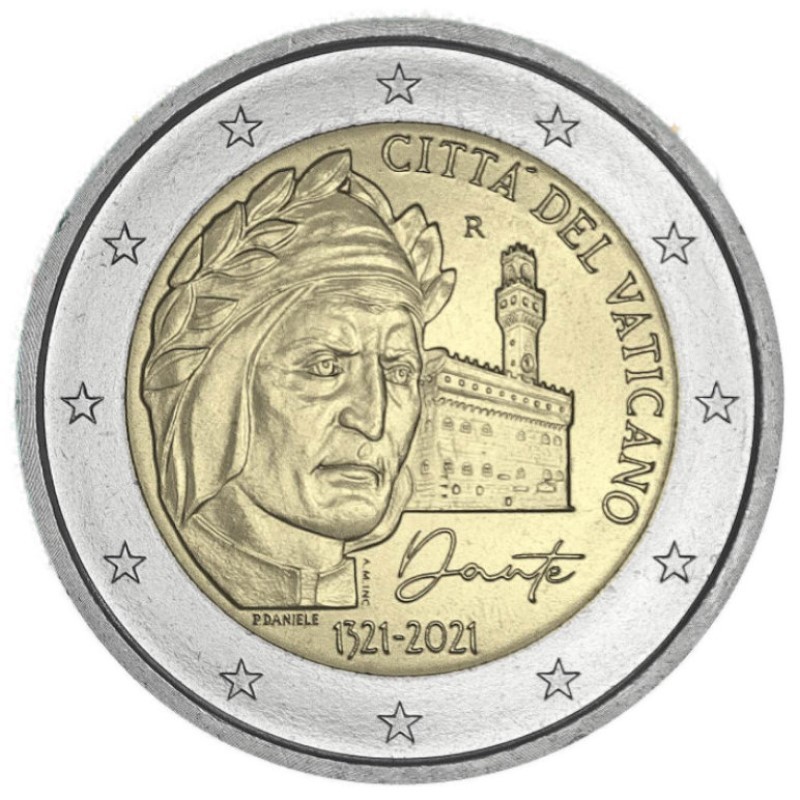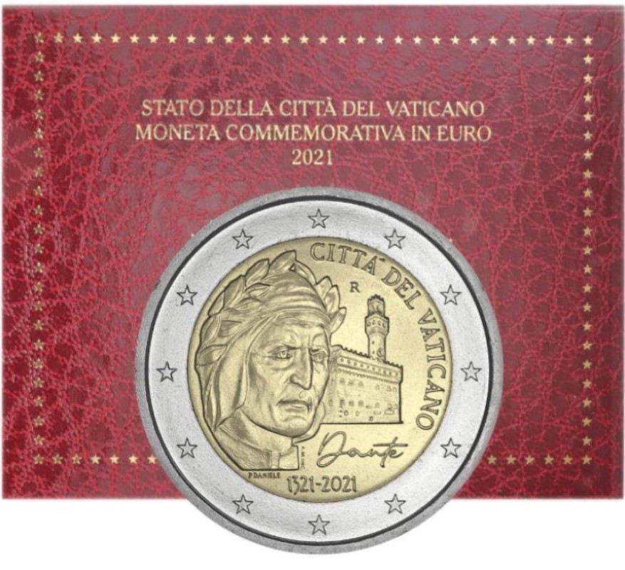 Vatikanas 2021 2 euro proginė moneta bankinėje kortelėje – 700-osios Dantės Aligierio mirties metinės (BU kokybė)