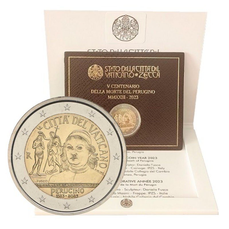 Vatikanas 2023 2 euro proginė moneta bankinėje kortelėje – Perudžinas (BU kokybė)
