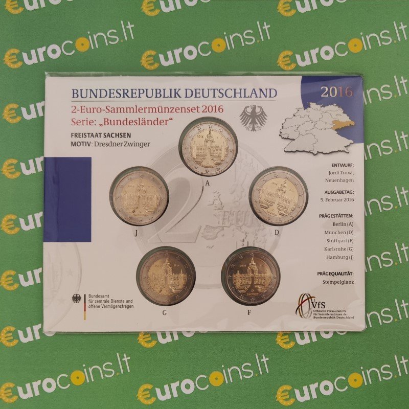 Vokietija 2016 2 euro proginės monetos kortelėje – Saksonija A-D-F-G-J (BU)