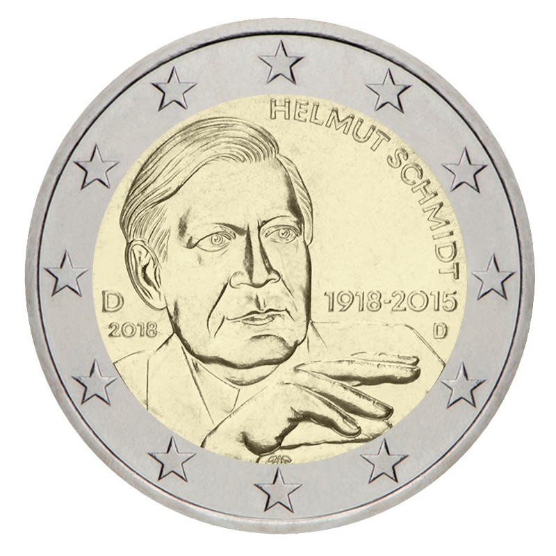 Vokietija 2018 2 euro proginė moneta – Helmuto Schmidto 100-metis