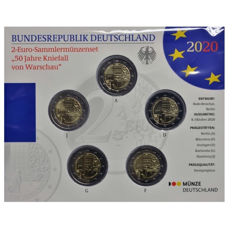 Vokietija 2020 2 euro proginės monetos – Kancleris Vilis Brantas A-D-F-G-J (BU)